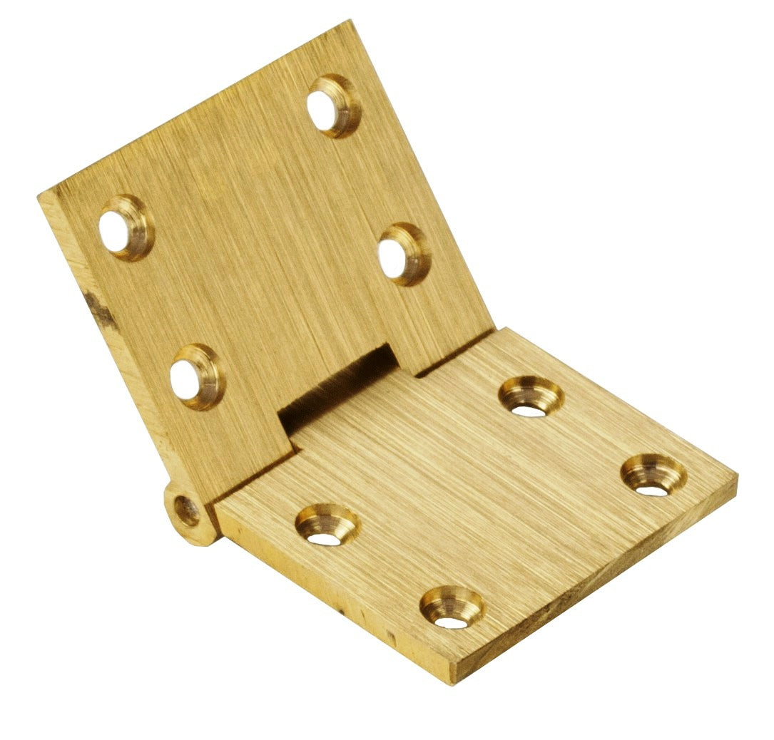 Butler's Tray Hinge, sanded brass, 38 x 63.5 x 3 mm, rectangular shape. Folding table hinge for folding tables. Furniture hinge, table hinge. Spring-loaded hinge 15.11.160 by SISO