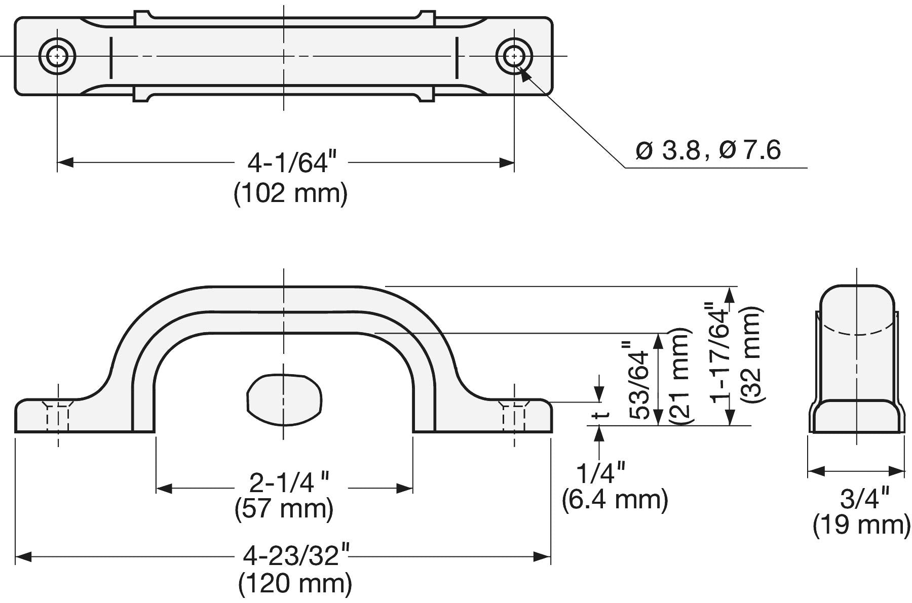 - Distance between mounting holes: 102 mm (4-1/32″)