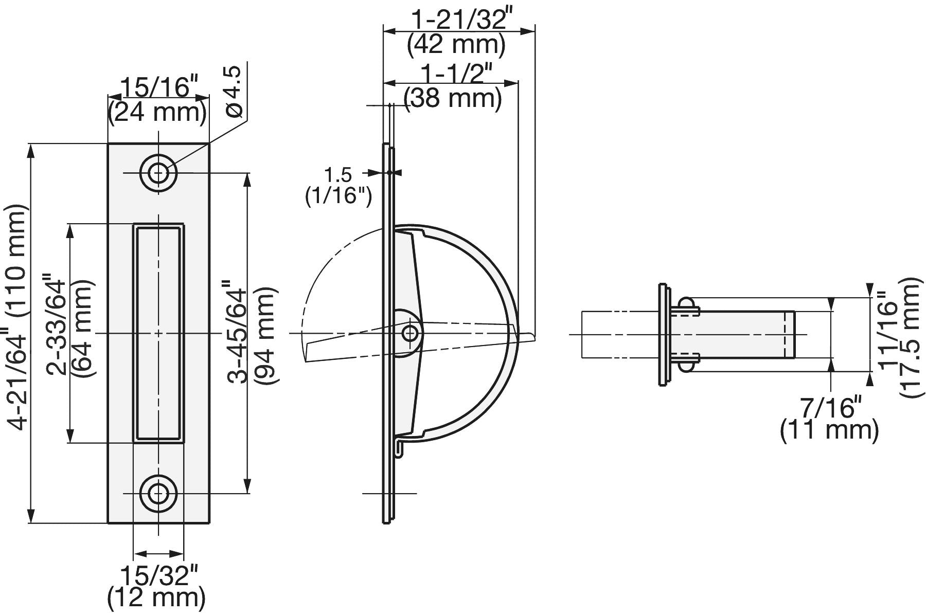 [caption id="attachment_46064" align="alignnone" width="420"] Sugatsune's SUS304 stainless steel folding handle, HR-110S (110 mm), satin finish. Technical drawing[/caption] Included in delivery: