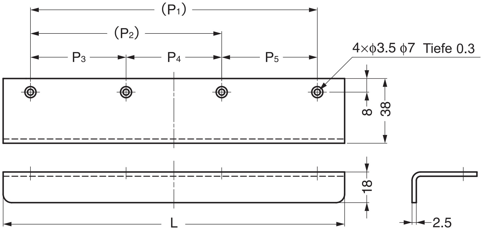 - Distance between mounting holes (P3): 65 mm (2-9/16″)