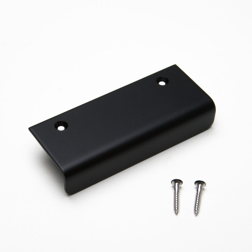 High-quality solid stainless steel angled handle, black, 95 mm (3.8") SN-95BL. Furniture handle SN-95BL for boats, yachts, stainless steel kitchens, beach hotels, doctor's offices, kitchen cabinets, and living room cabinets, by Sugatsune / LAMP® (Japan)