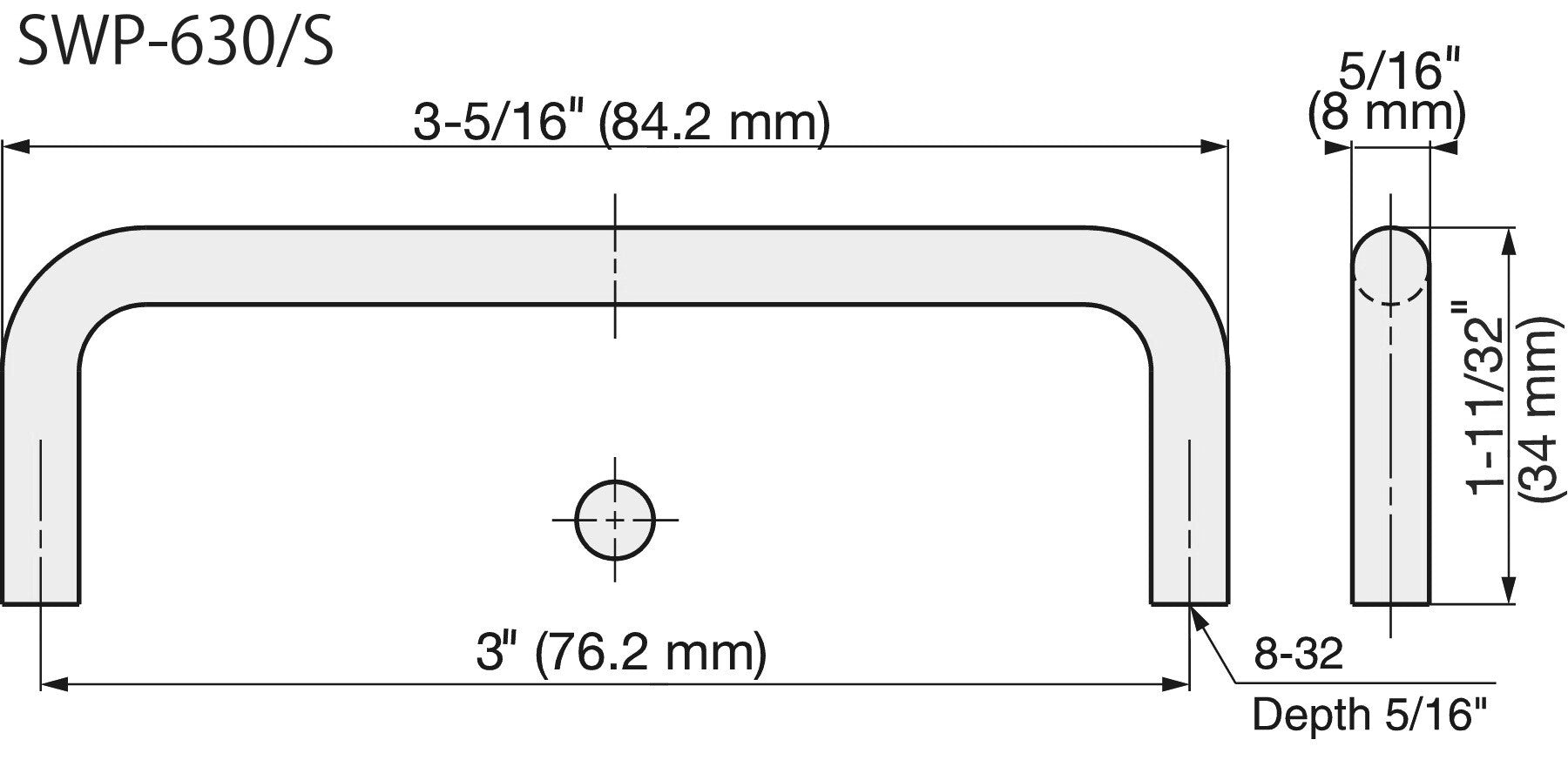 Edelstahlmöbelgriff SUS316, 84,2 mm (3,4″) SWP-630/S. Bügelgriff, aus feinstem korrosionsfreiem Edelstahl V4A (SUS316) für hochwertige Einrichtungen, sowie für den Außenbereich, feuchte, raue und hochkorrosive Umgebungen von Sugatsune / LAMP® (Japan)
