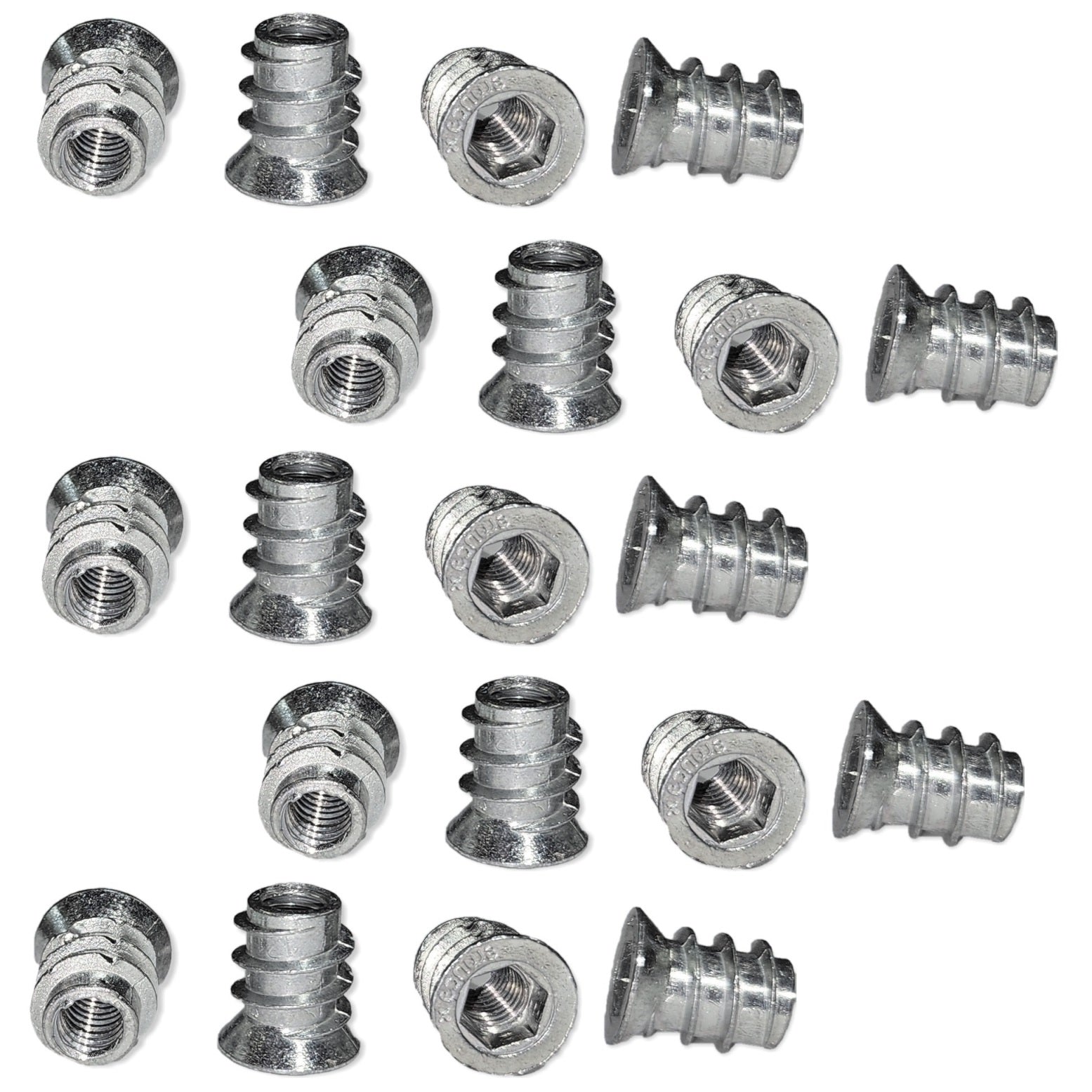 20 pieces of high-quality screw-in sockets with M6 internal thread, countersunk head with hexagon socket and cover edge, surface: galvanized, 13 mm (0.6″), 8008005. Screw-in nuts for furniture, wood panels, chipboard, tables and much more, by EMUCA