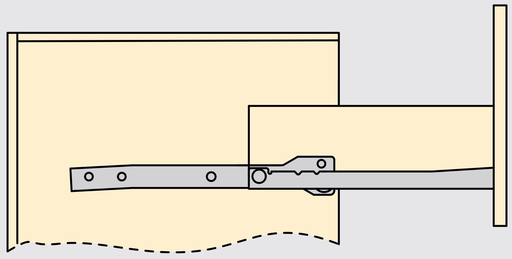 - The cabinet rail is attached to the cabinet with a distance of 2 mm to the edge