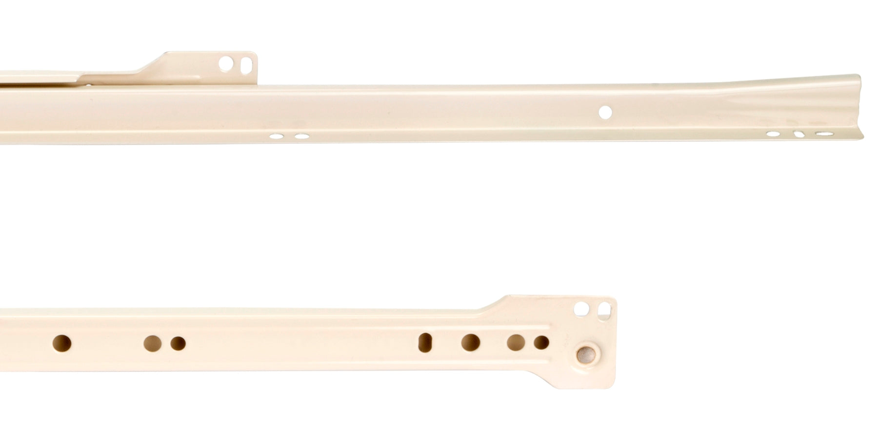 Rollschubführungen, Teilauszug, weiß lackiert, RAL 9001, 250 mm (9,9″) E.T30C.25.WH. Rollschubführungen aus Stahl mit Teilauszug, für Holzschublade, Tablarauszug, Holzschubkasten, Küchenmöbel, Büromöbel, Wohnmöbel, von EMUCA