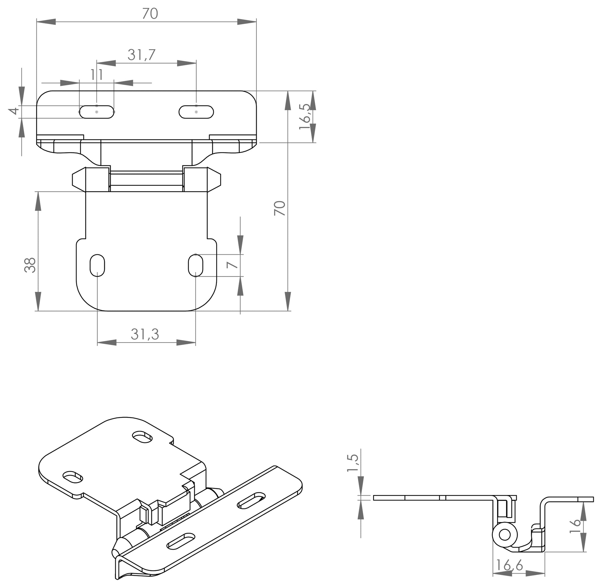Set of two classic furniture hinges with visible hinge joint from SISO / UMAXO® for vintage style furniture