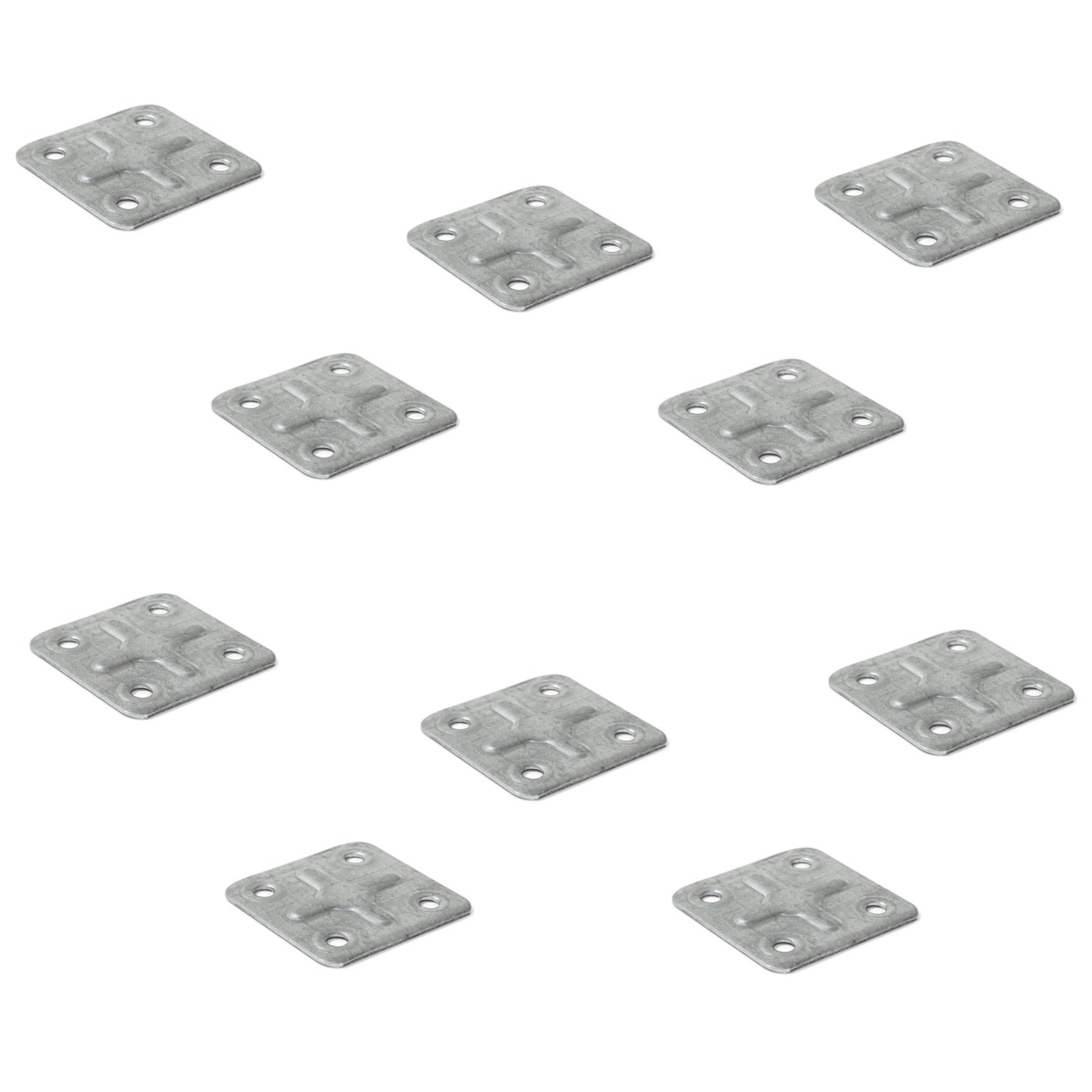 10 pieces square flat connector, perforated, made of robust steel, surface: galvanized 8217405