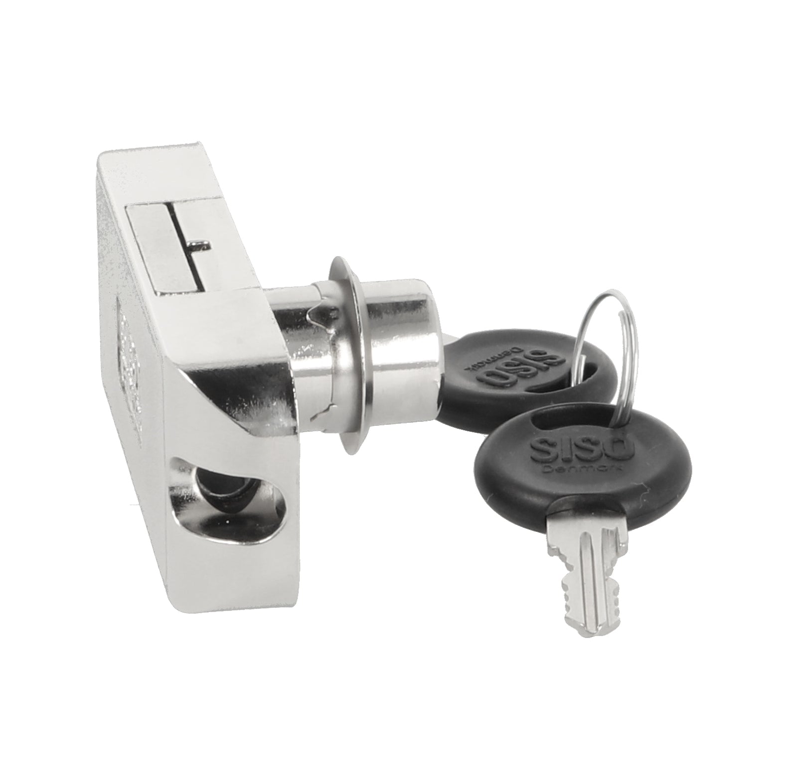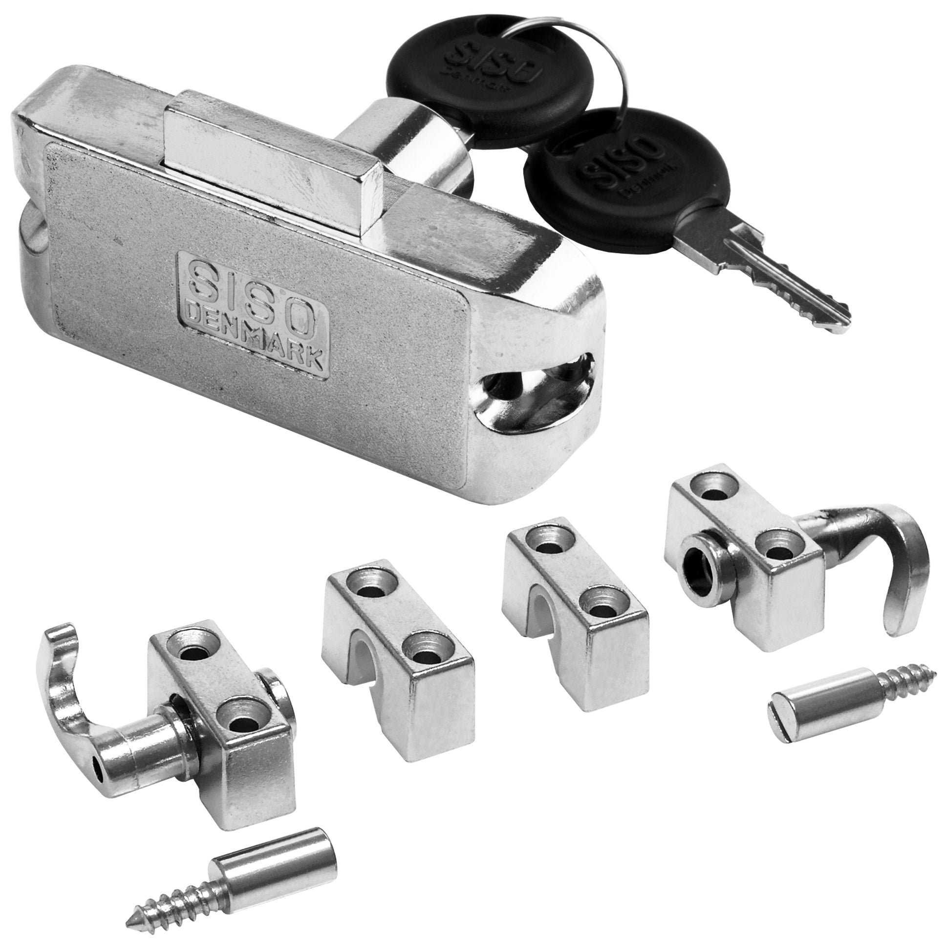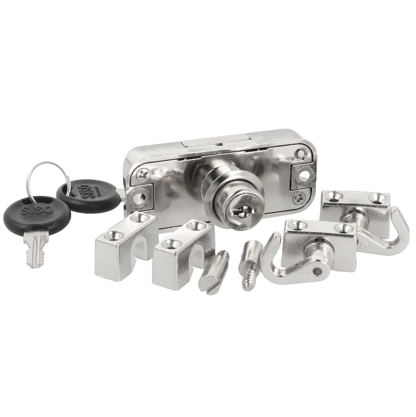 Serrure à crémone comprenant 2 crémones 1000 mm, s'entrouvrant, verrouillage à droite, surface : nickelée, 14.05.268+2x14.05.720. Serrure à crémone pour meubles, armoires, penderies et bien plus encore, kit pour une porte d'armoire, de SISO Danemark