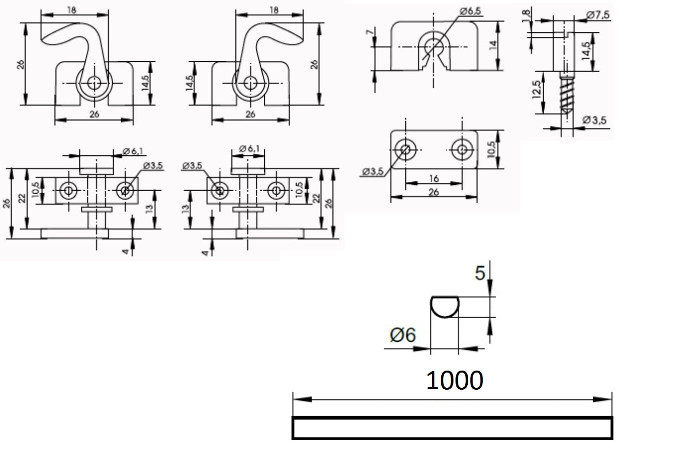 - La roue intérieure des serrures à crémone est en polypropylène (PP)