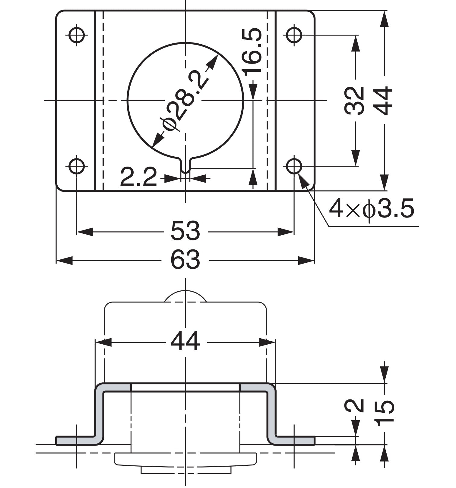 - Diamètre de la poignée du bouton-poussoir (⌀D) : ⌀18,8 mm (47/64″)