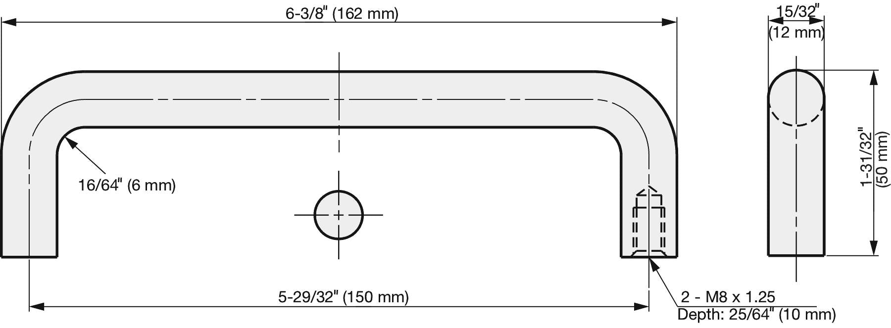 - Hauteur de la poignée (H) : 50 mm (1-31/32″)
