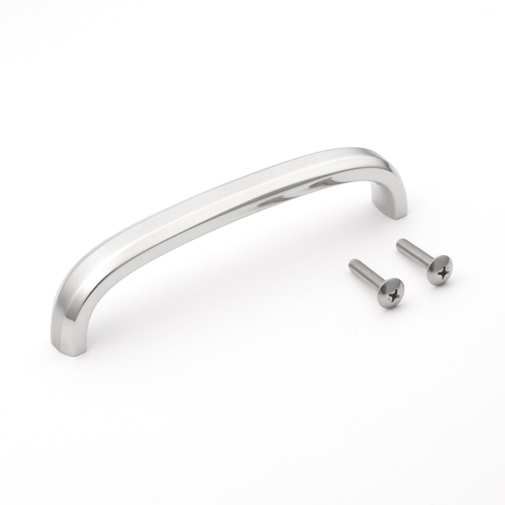 Edelstahlgriff V2A (SUS304), 150 mm (6″) XL-CUR150TT. Massiver Edelstahlgriff aus SUS304 (V2A), matt und poliert, für Badezimmermöbel, feuchte Umgebung, Schiff, Wohnwagen, Medizinbereich, Küchenmöbel, von Sugatsune / LAMP® (Japan)