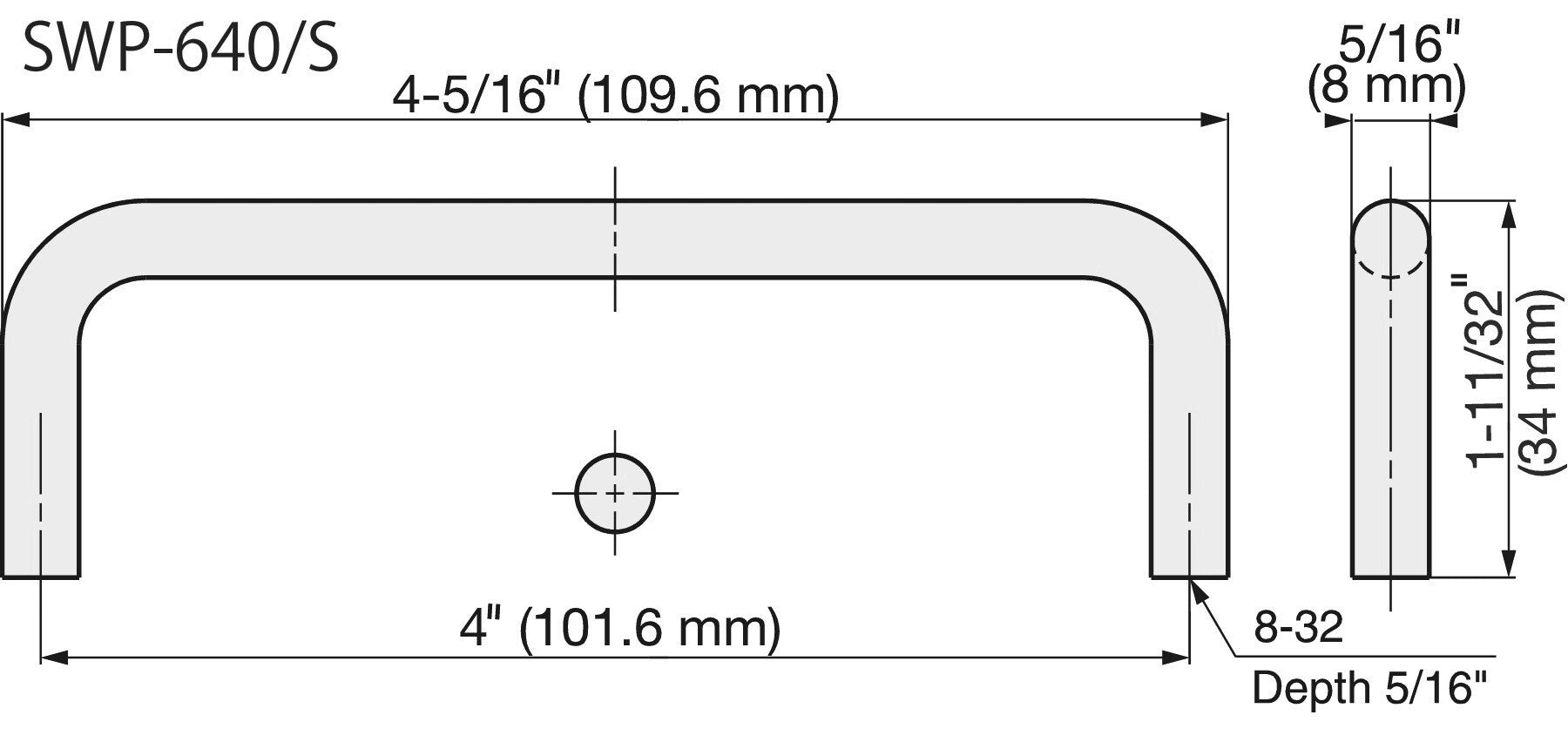 Edelstahlmöbelgriff SUS316, 109,6 mm (4,4″) SWP-640/S. Bügelgriff, aus feinstem korrosionsfreiem Edelstahl V4A (SUS316) für hochwertige Einrichtungen, sowie für den Außenbereich, feuchte, raue und hochkorrosive Umgebungen von Sugatsune / LAMP® (Japan)