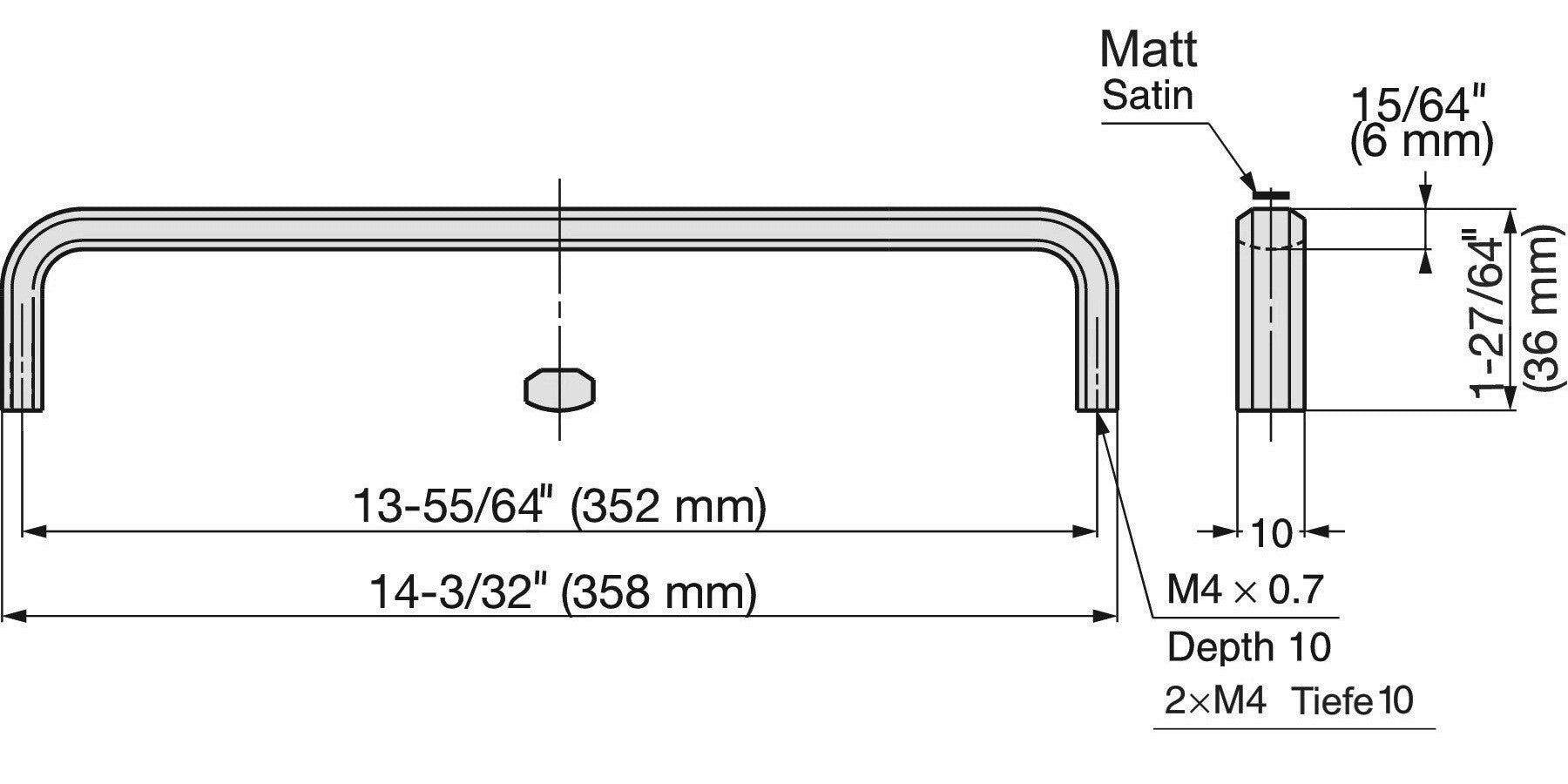 Edelstahlmöbelgriff SUS316, matte und glänzende Oberfläche, 358 mm (14,1″), XL-JS360TT. Möbelgriff, aus feinstem Edelstahl V4A (SUS316) für hochwertige Einrichtungen, sowie für den Außenbereich, feuchte und raue Umgebungen von Sugatsune / LAMP® (Japan)