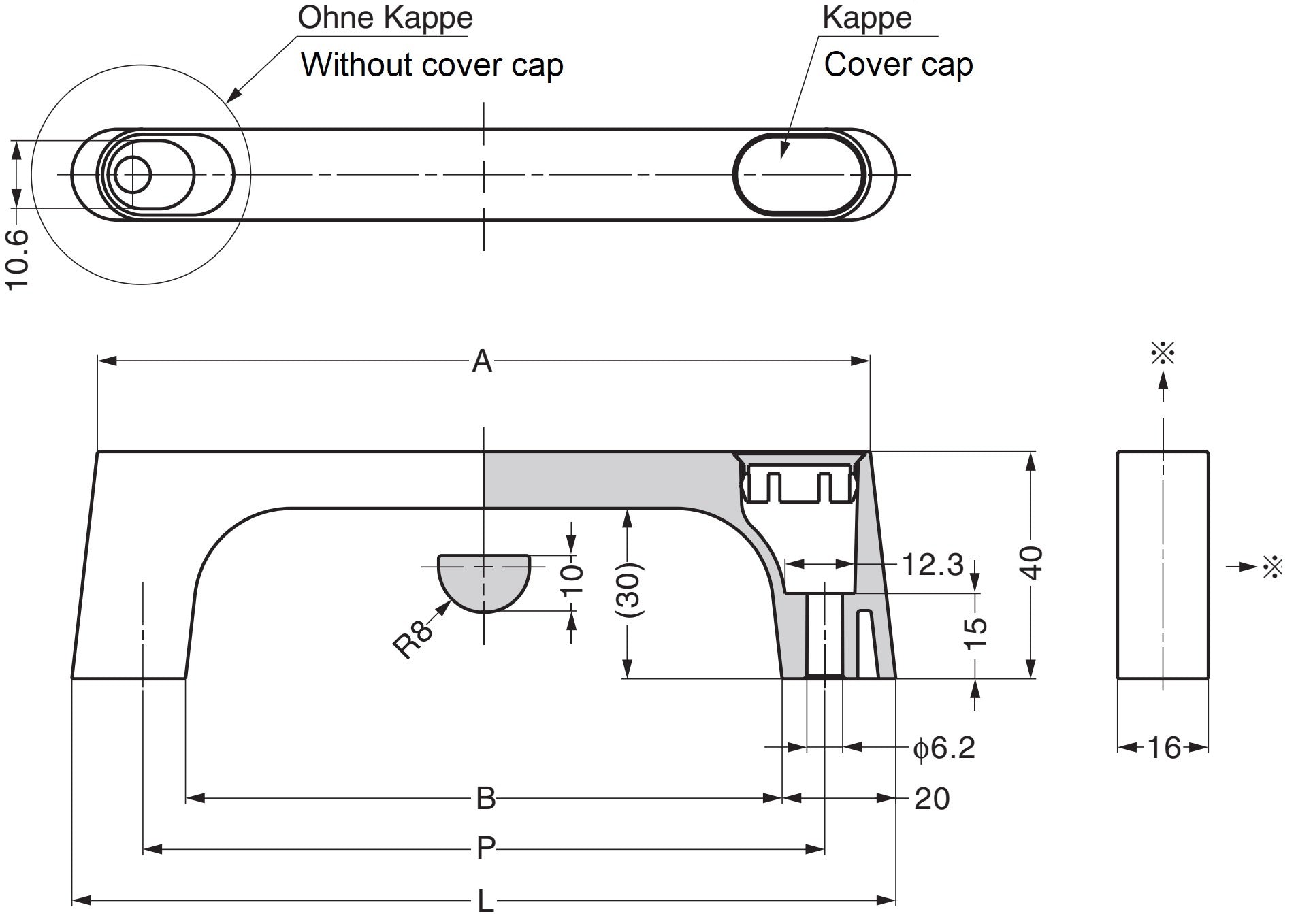 Hochwertiger massiver Gerätegriff aus Zinklegierung (ZDC), verchromt, satiniert matt mit grauen Abdeckkappen, 175 mm (6,9″) KMH-150-GR. Maschinengriff KMH-150-GR für Industrieschrank, Produktionsanlage, Maschinenbau, von Sugatsune / LAMP® (Japan)