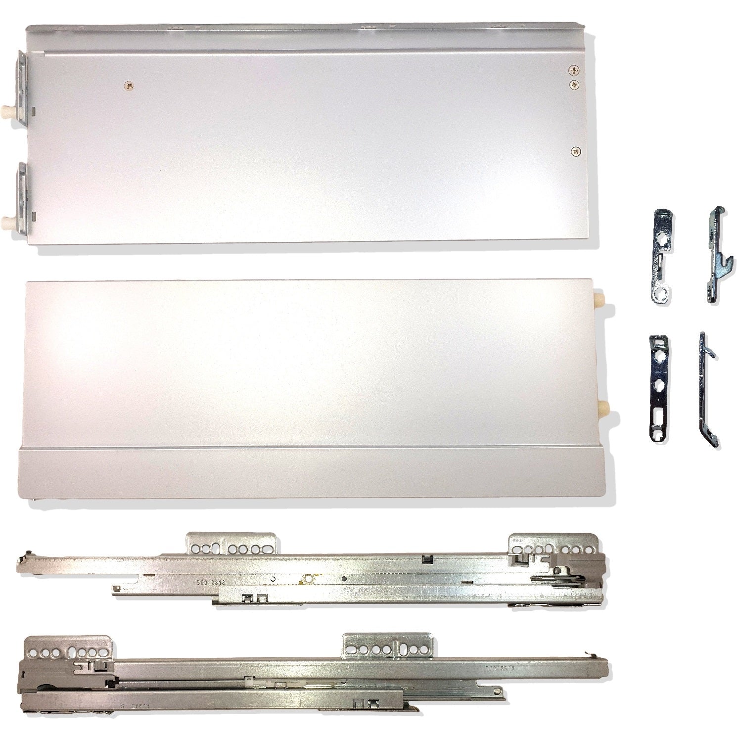 Ensemble de tiroirs GRASS Nova Pro SCALA, hauteur 186 mm. Extension complète élevée, amortie, synchronisée, 40 kg. Couleur : Argent