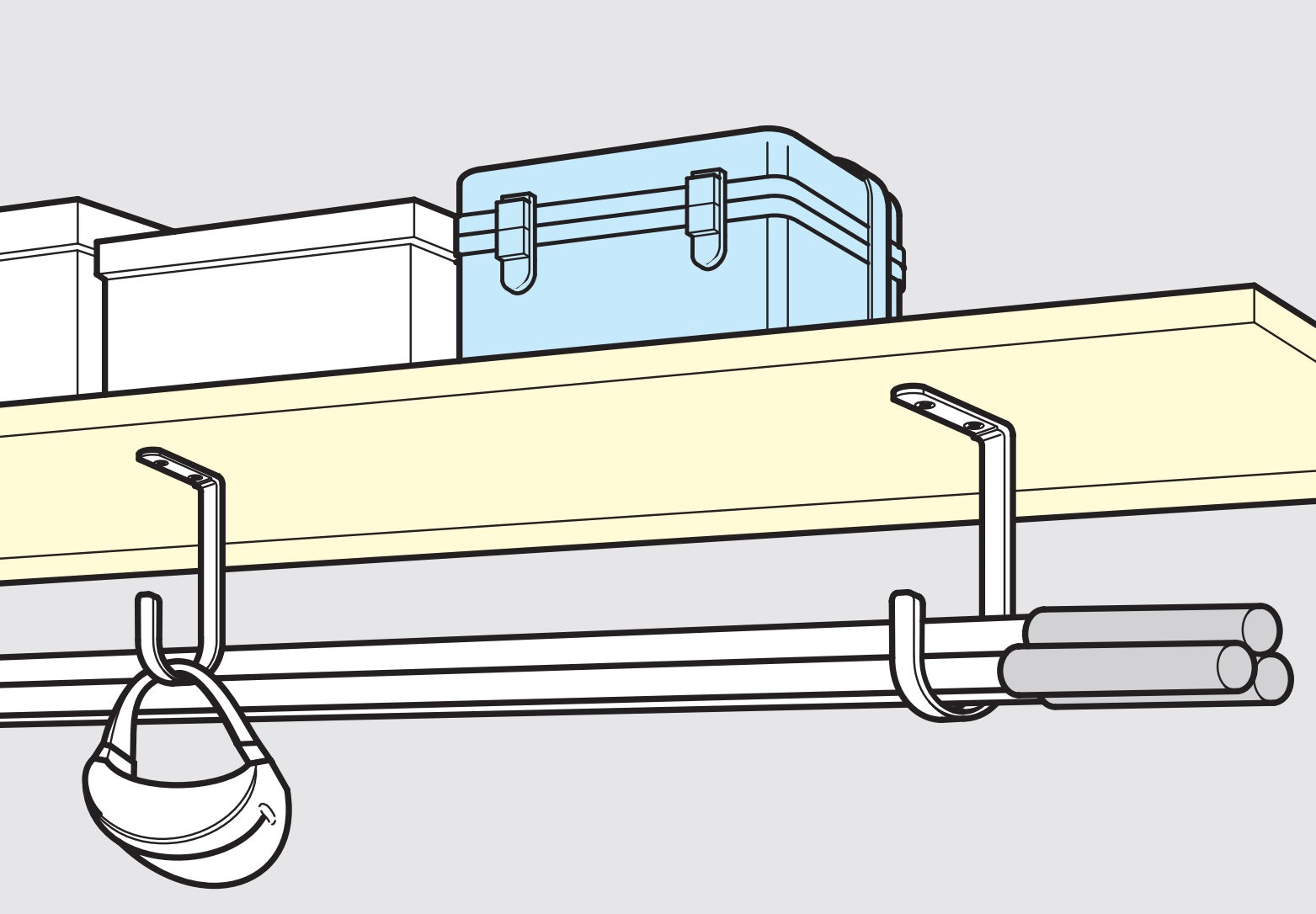 - Le crochet universel JFT260M possède deux trous de fixation d'un diamètre de ⌀5,3 mm (13/64″), avec tête fraisée