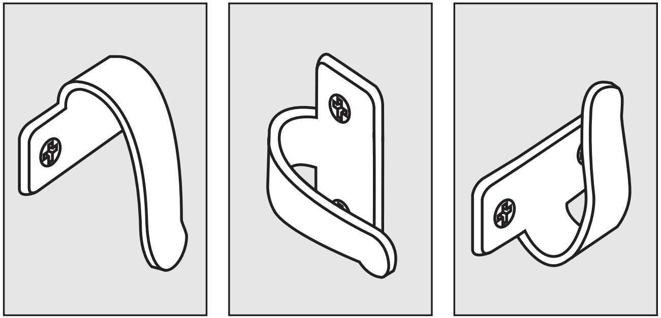 - La fixation s'effectue à l'aide des vis fournies dans la livraison (vis à bois à tête fraisée 5,8 x 25 mm)