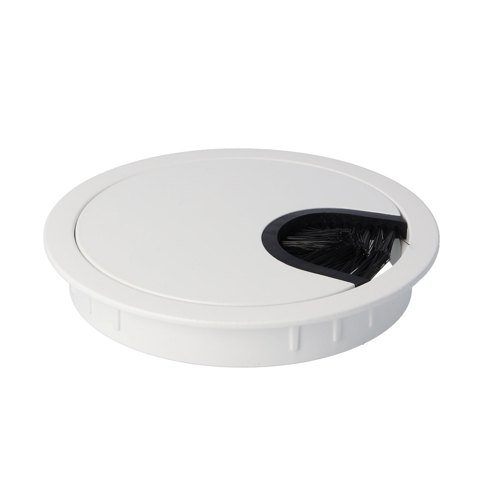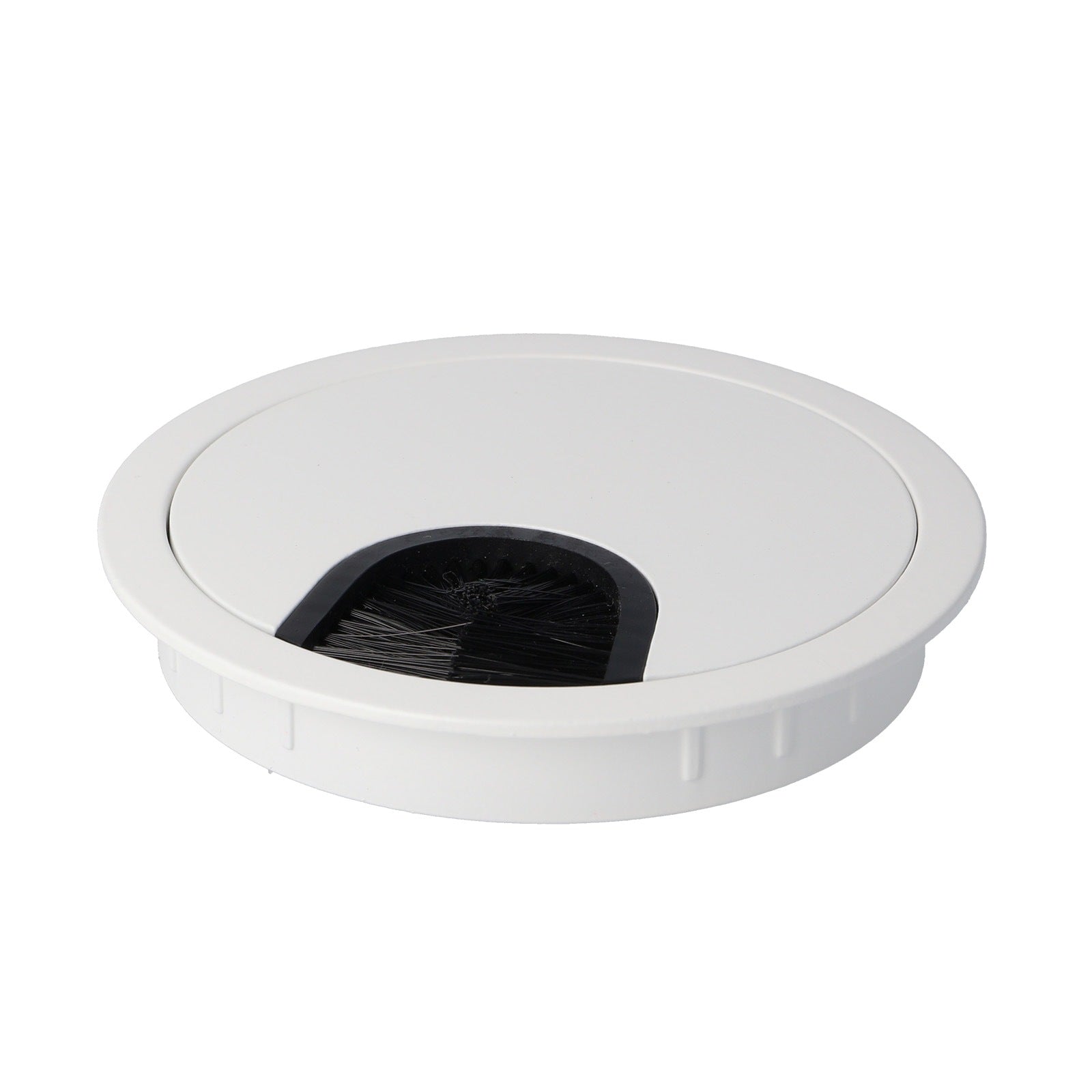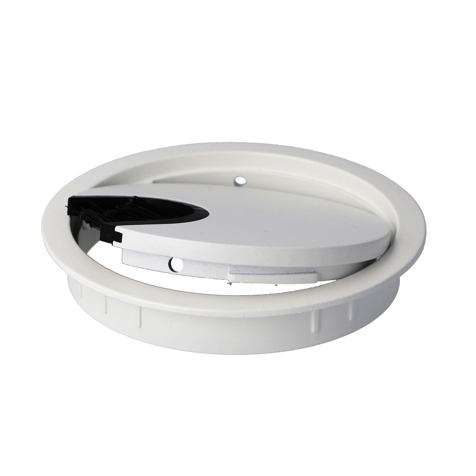 Passe-câble massif de haute qualité en Zamak, Ø80 mm pour bureau avec joint à brosse, surface : blanche. Gestion des câbles de table, sortie de câbles de SISO / Danemark