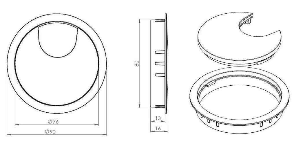 Passe-câble massif de haute qualité en Zamak, Ø80 mm pour bureau, avec joint à brosse