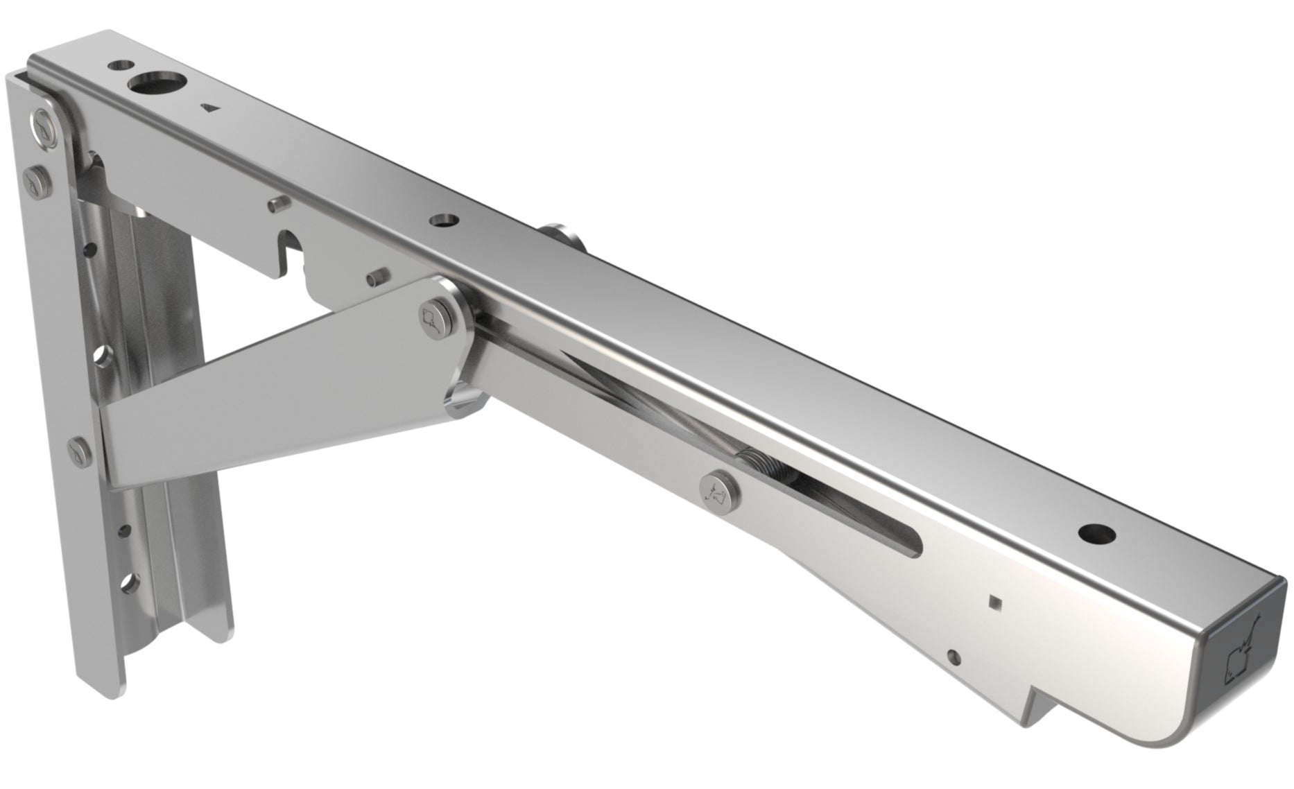 Support de table pliant robuste de haute qualité avec amortisseur à fermeture douce EB-317-DA en acier inoxydable. Console pliable avec une capacité de charge jusqu'à 200 kg. Support de rabat de ROCA / Sugatsune