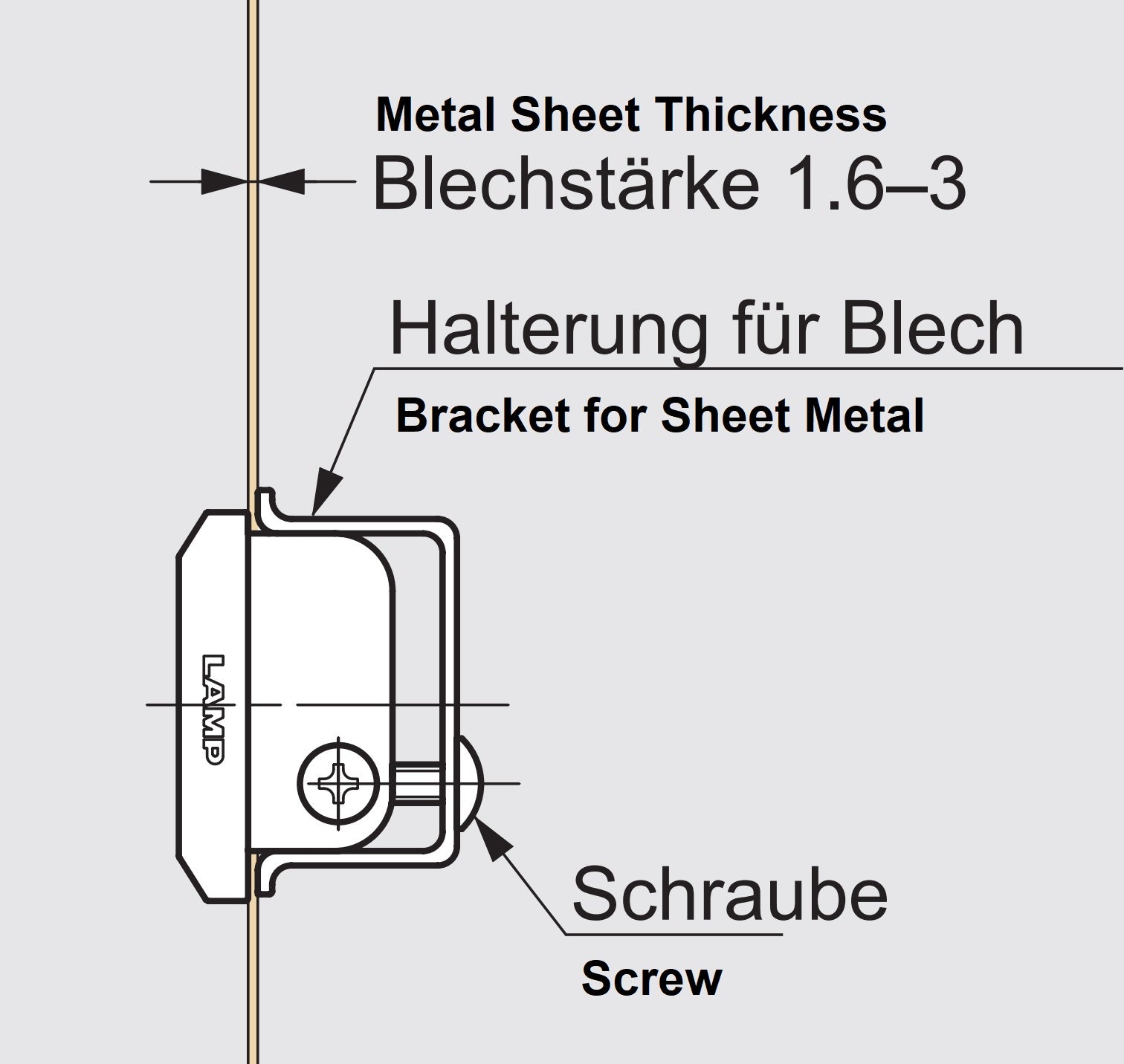 - Pour le montage dans la tôle, 4 supports à vis XLA-HHA40B doivent être utilisés