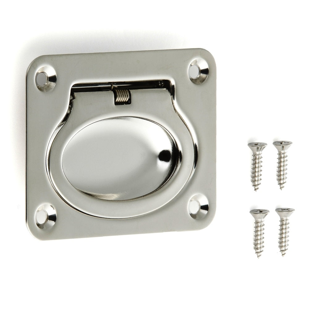 Ringförmiger Edelstahl-Klappgriff SUS304, 75 mm (3″) 980643. Ringförmiger Edelstahl-Klappgriff aus rostfreiem Edelstahl V2A, glänzend poliert, gefedert, für Revisionsklappe, Revisionstür, feuchte Umgebung, Schiff, Caravan von Sugatsune / LAMP® (Japan)