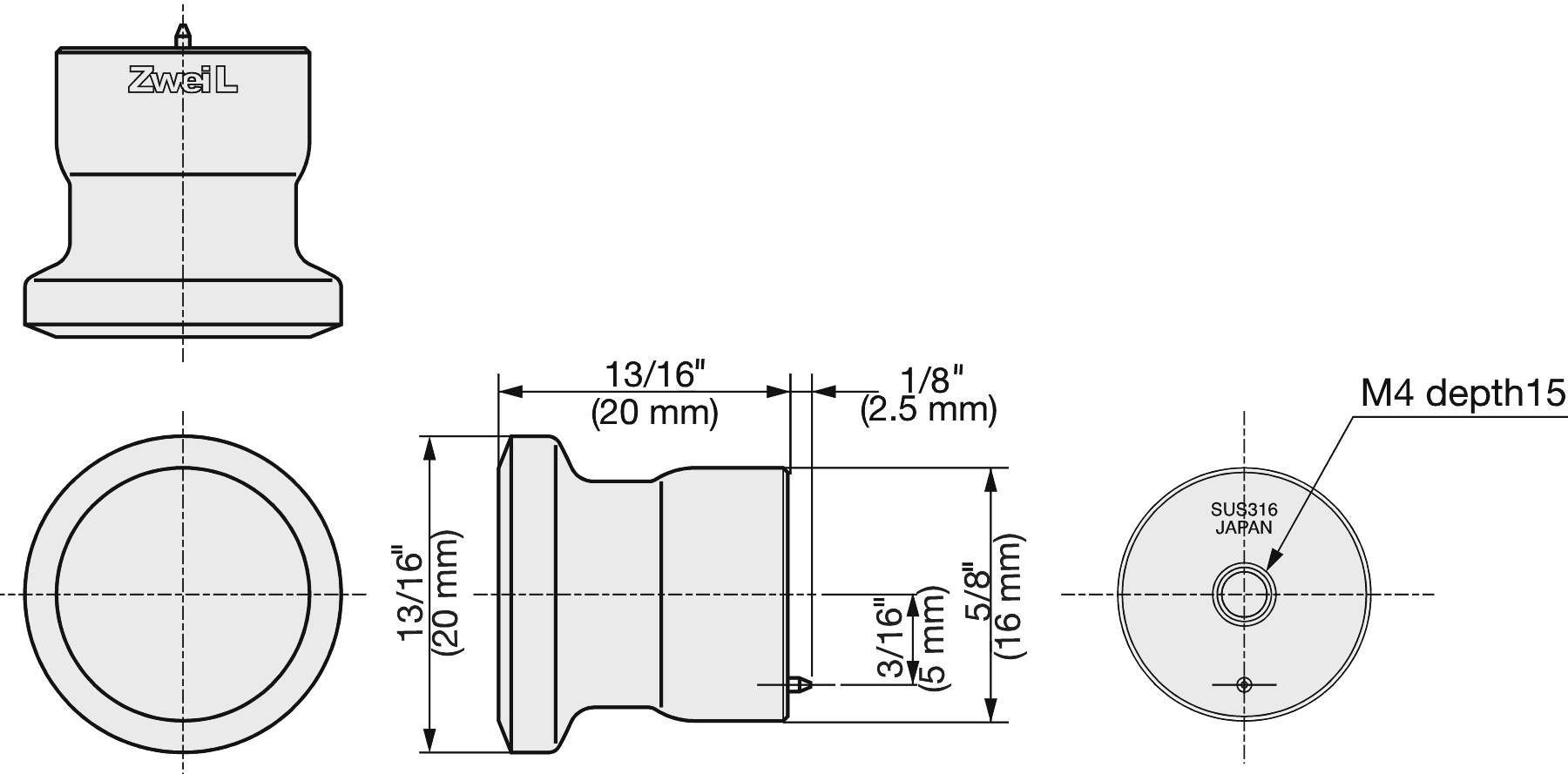 [caption id="attachment_40241" align="alignnone" width="420"] Bouton de meuble en acier inoxydable en deux parties de Sugatsune, ZL-1906-28 (26 mm). Dessin technique[/caption] Inclus dans la livraison :