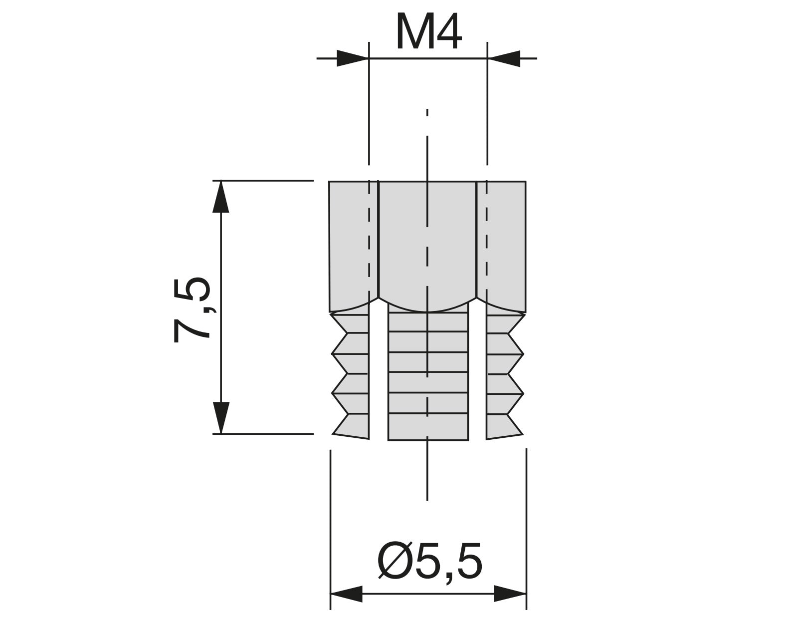 - Die Spreizmuffe mit Innengewinde M4 ist zum Eindrücken in Bohrloch