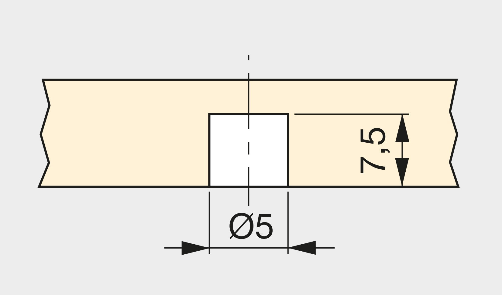 - Die Bohrtiefe sollte 7,5 mm (19/64″) betragen (für weitere Details s. Montagezeichnung)