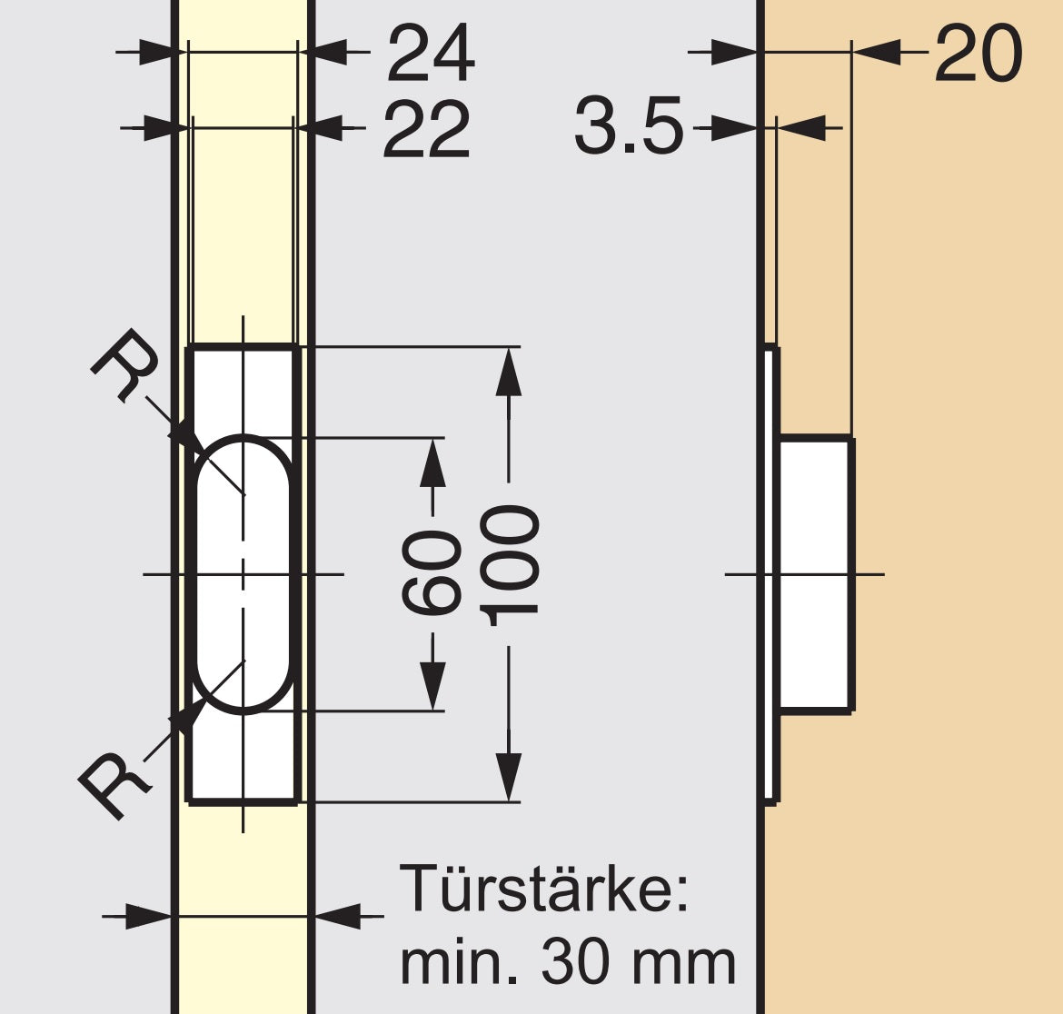 • Für die Montage muss die Tür ausgefräst werden (für weitere Details s. Montagezeichnung)