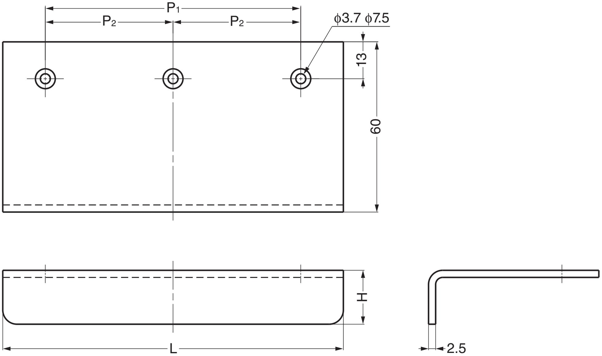 - Länge des Edelstahl-Winkelgriffs (L): 95 mm (3-47/64″)