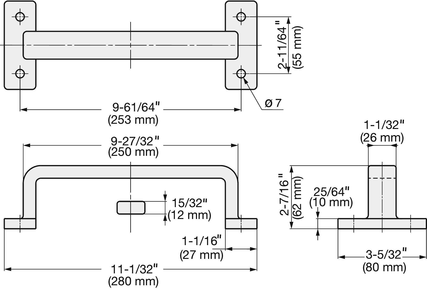 Hochwertiger massiver Edelstahl-Griff aus Edelstahl V4 (SUS316) mit vier Befestigungslöchern, Oberfläche glänzend, Höhe 62 mm (2,45″) FT-280