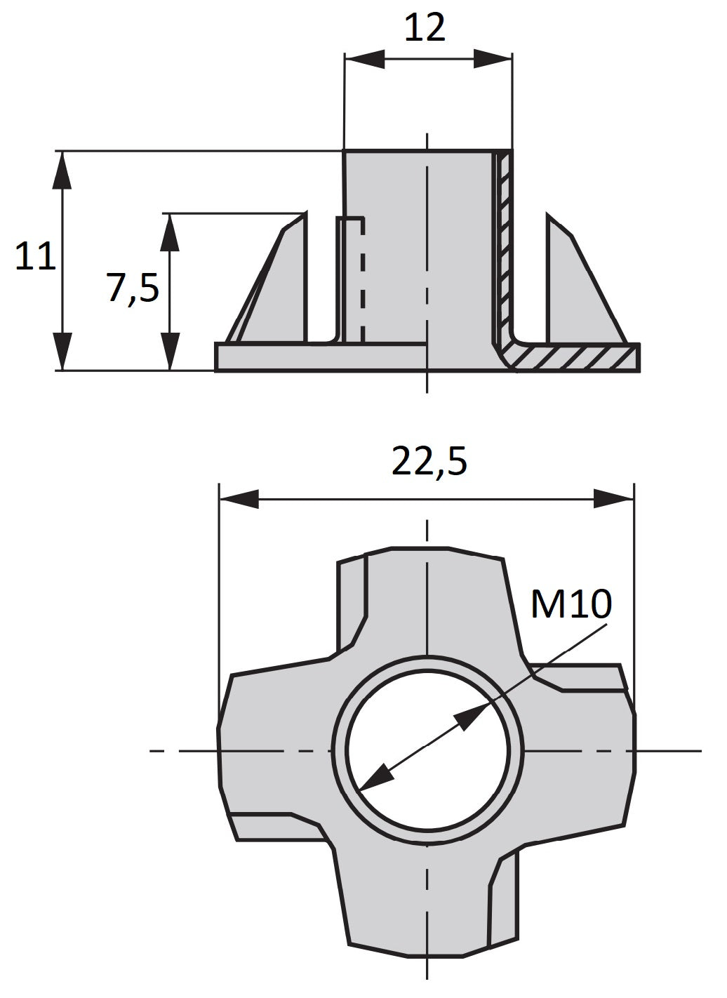 - Durchmesser der Einschlagmutter: ⌀12 mm (15/32″)