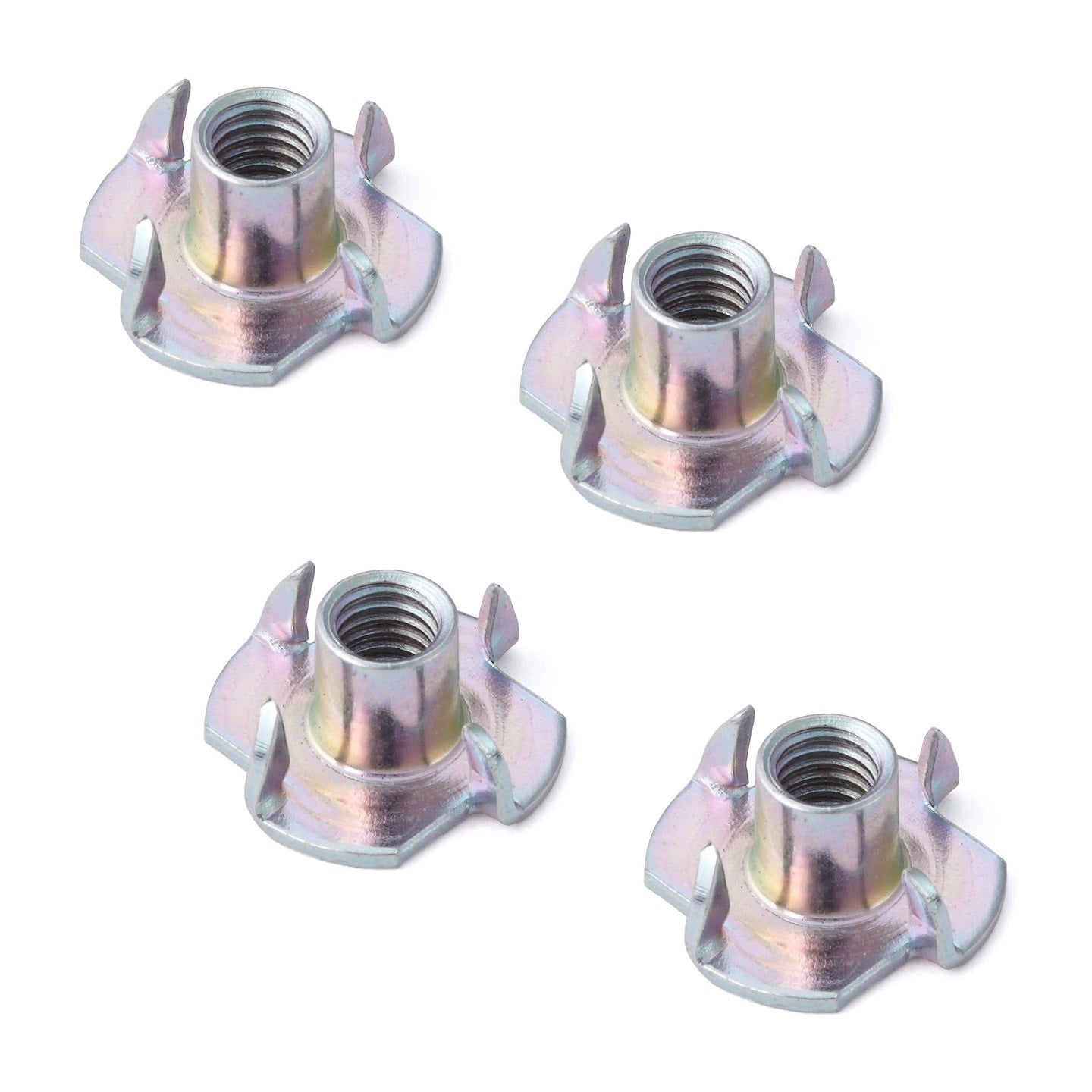 4 Stück Einschlagmutter mit M6 Innengewinde und vier Einschlagspitzen, Aufschraubplatte, aus robustem Stahl, Oberfläche: verzinkt, gelb, SC-124-6, Größe: 19 mm (0,8″)