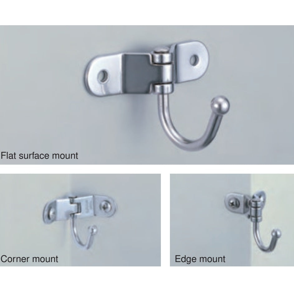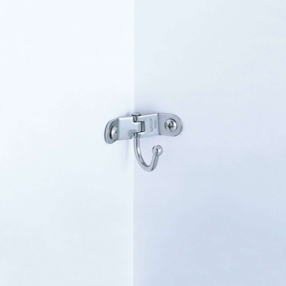 Flexibler schwenkbarer Edelstahl-Haken mit Kugel für ebene Fläche, Ecke oder Kante. Edelstahlhaken TZ-360 von Sugatsune / Lamp (Japan)