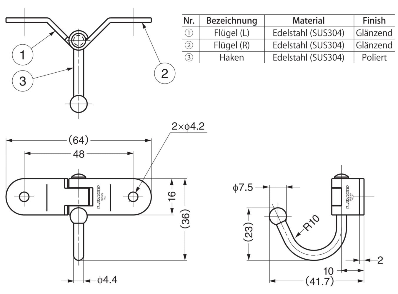 HOCHWERTIGE MARKENQUALITÄT: Sugatsune LAMP® Beschläge werden in hochwertiger Qualität gefertigt und erstklassig verarbeitet, sind äußert stabil und belastbar Referenznummer des Herstellers: