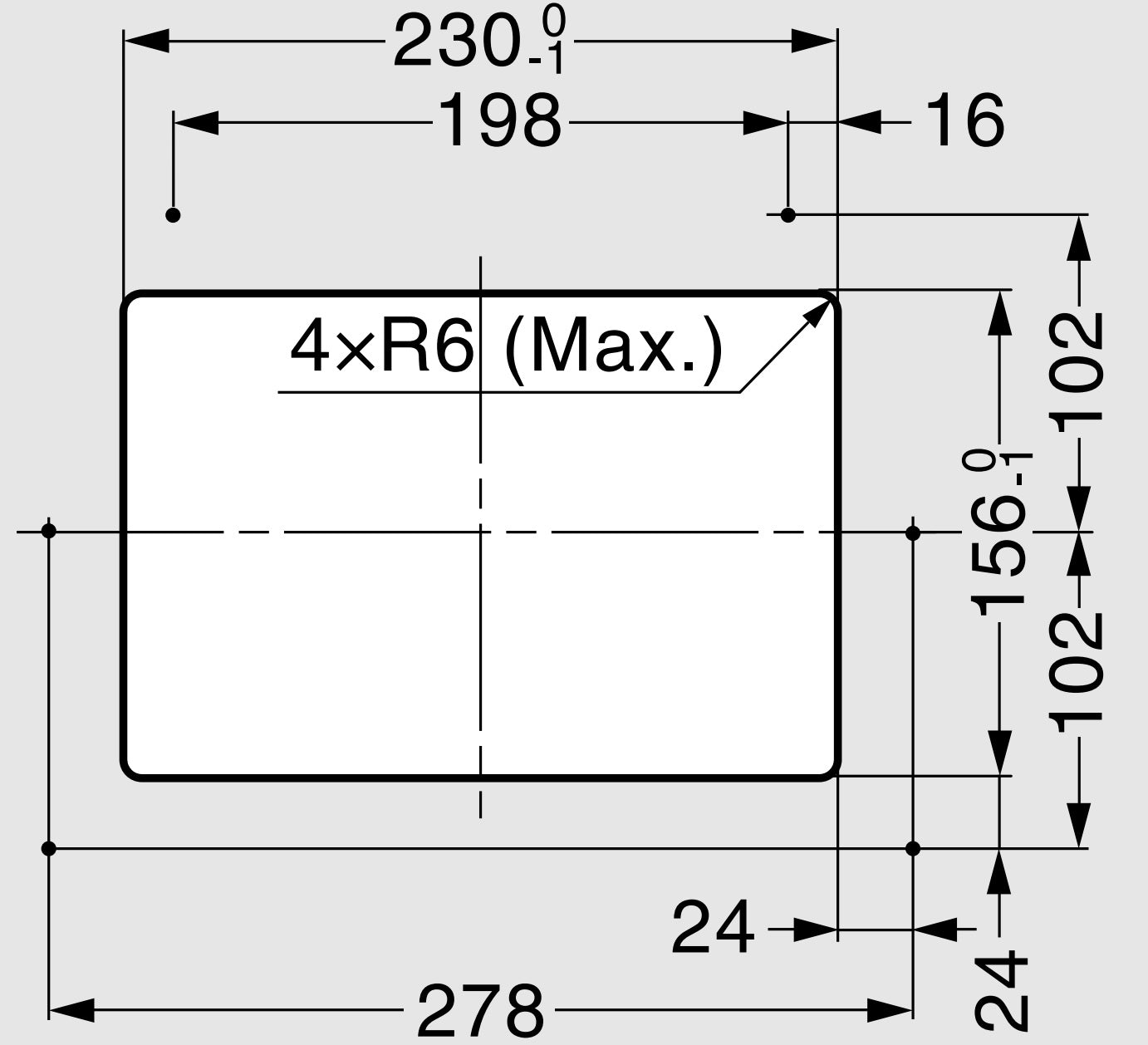 - Für die Montage der Müllklappe AZ-GD231-HL muss in der Korpuswand ein Ausschnitt mit den Maßen 198 mm (7-51/64″) x 156 mm (6-9/64″) durchgeführt werden