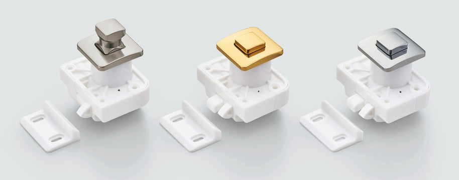 Der hochwertige Druckknopf-Verschluss TLP-S-BB-CR und TLP-LBM(W) ist ein Möbelgriff mit Verschlussfunktion und sorgt im versenkten Zustand dafür, dass sich die Möbeltüren oder Schranktüren während der Fahrt, bzw. während des Fluges nicht ungewollt öffnen.