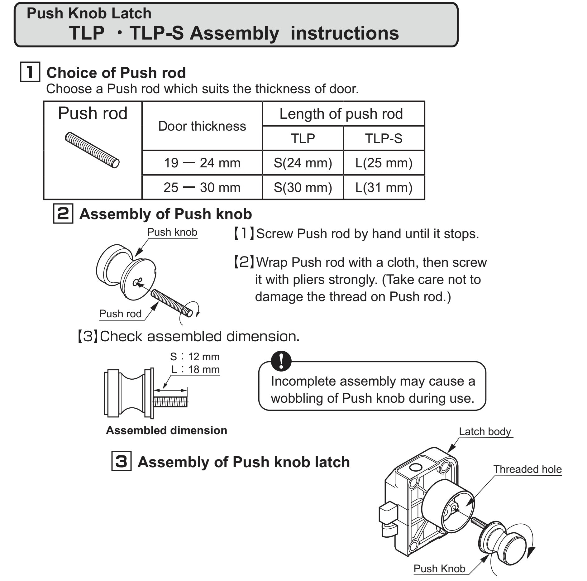 Der Druckknopf TLP-S-BB-CR und TLP-LBM(W) ist für die Türstärke zwischen 19 mm (3/4″) und 30 mm (1-3/16″) geeignet.