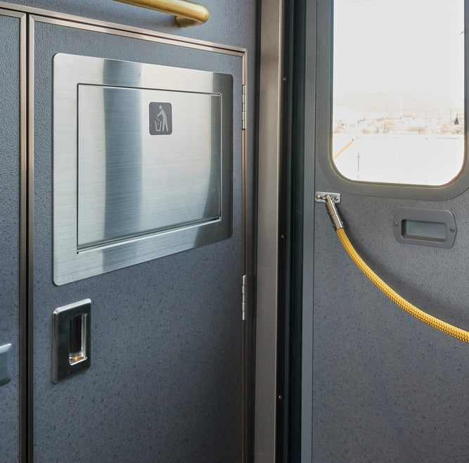 - Die Müllklappen AZ-GD230-HL werden aus rostfreiem Edelstahl (V2A) hergestellt