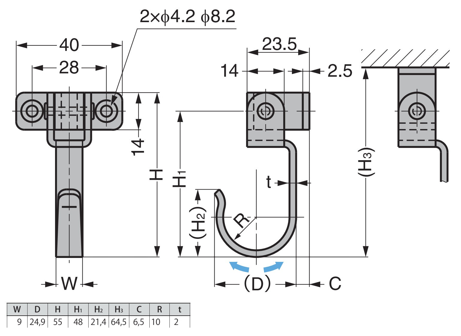 Hochwertiger schwenkbarer Haken UC-048 aus Edelstahl für Wand- und Deckenmontage