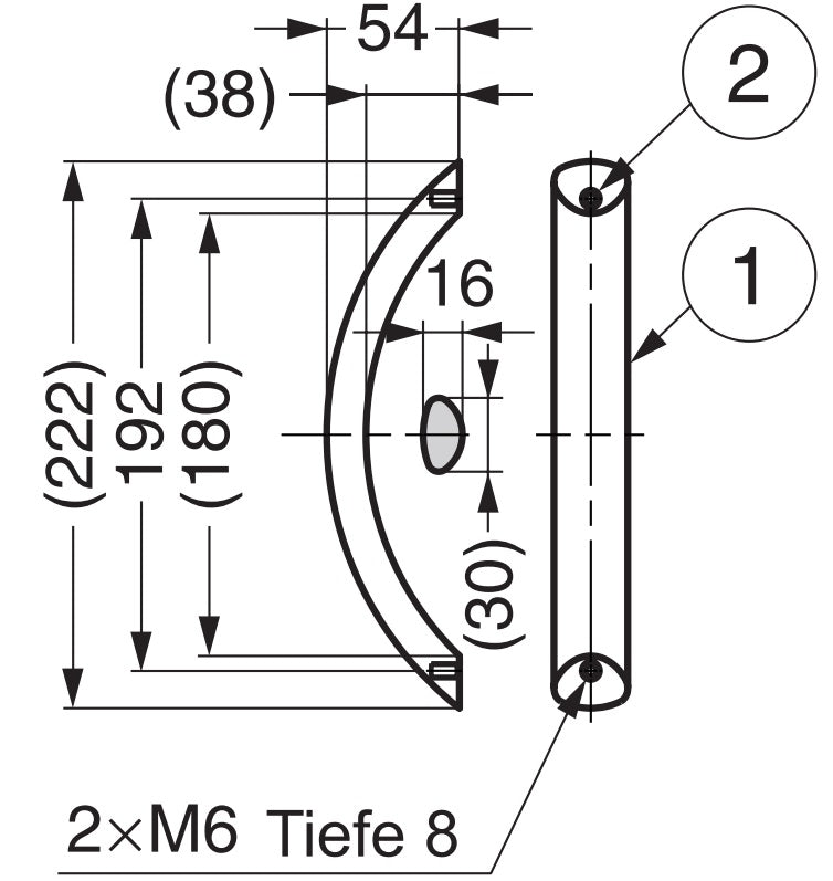 • Der Industriegehäusegriff SOR-200BL hat zwei Befestigungslöcher mit der Tiefe 8 mm (5/16″) mit Innengewinde