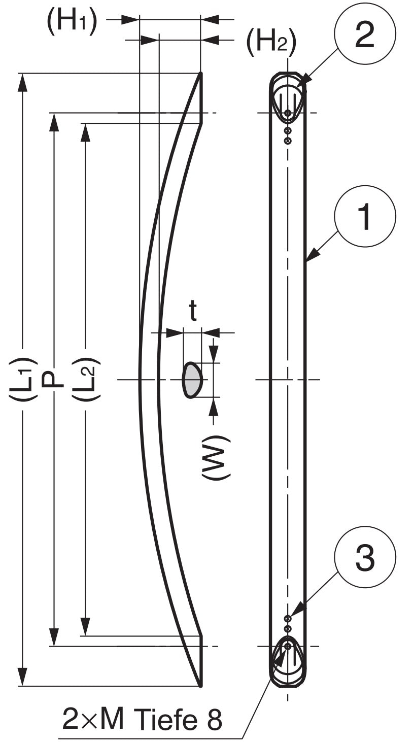 - Der Industriegehäusegriff SOR-400BL hat zwei Befestigungslöcher mit der Tiefe 8 mm (5/16″) mit Innengewinde