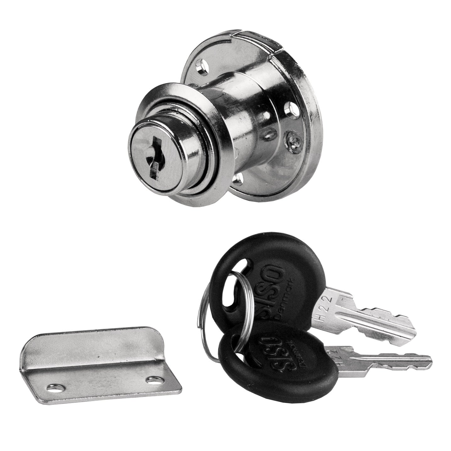 Hochwertiges Klappenschloss aus Zamak mit Zylinderrosette und zwei Schlüsseln, inkl. Schließblech, 19 mm (0,8″), Ausführung: verschiedenschließend, 14.07.105-0. Einlass-Klappenschloss aus Zamak für Klappen, Schränke und viel mehr, von SISO Denmark