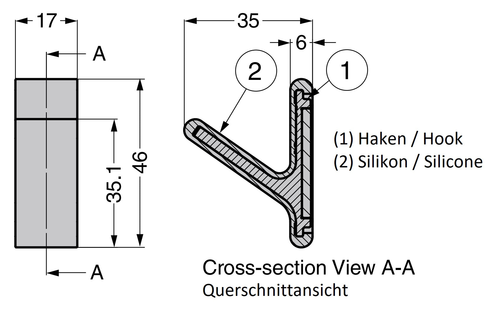 - Breite der Hakenspitze: 17 mm (43/64″)