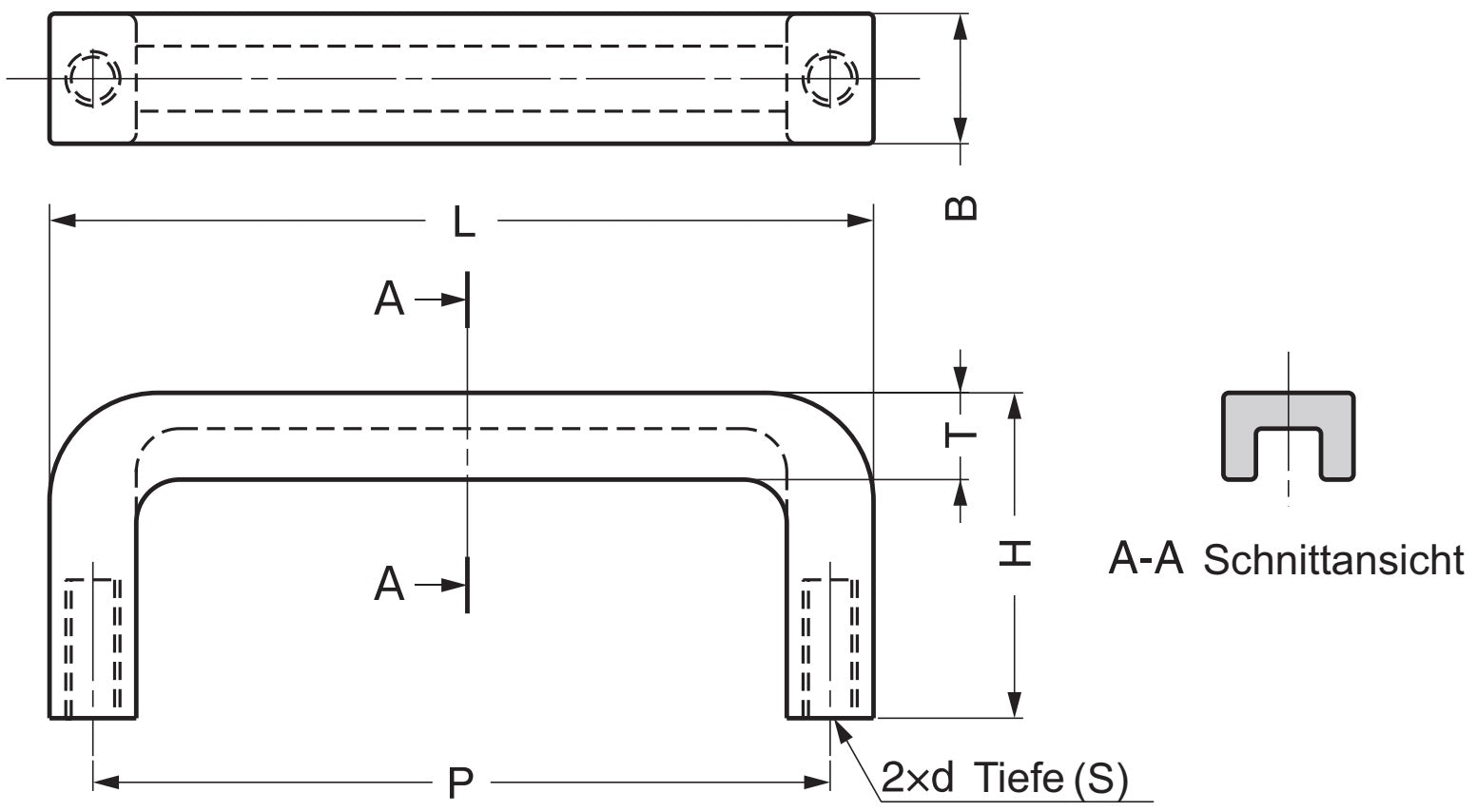 - Die Tiefe der Befestigungsbohrungen im Griff beträgt 10 mm (25/64″)
