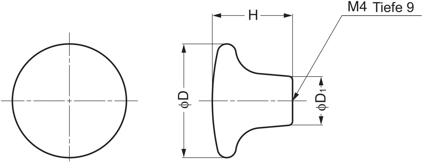 - Durchmesser des Knopfgriffs (⌀D): ⌀26 mm (1-1/32″)