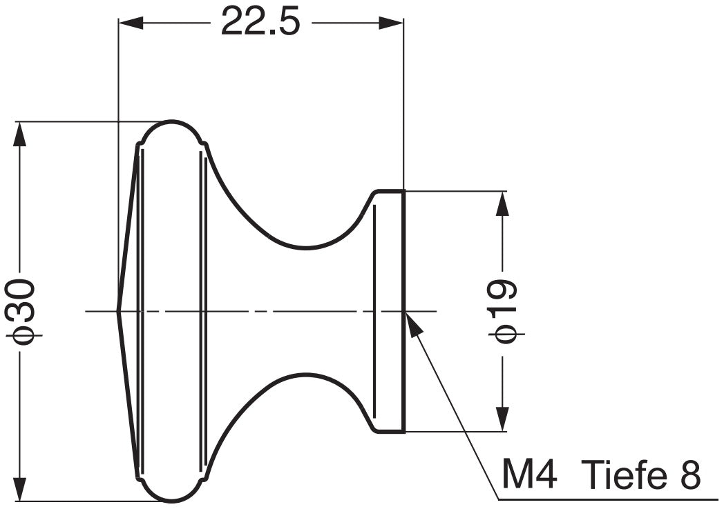 [caption id="attachment_117832" align="alignnone" width="420"] Hochwertiger Möbelknopfgriff aus Messing, Oberfläche: glänzend poliert, KHE101-30PB, 30 mm, von Sugatsune. Technische Zeichnung[/caption]   Im Lieferumfang enthalten: