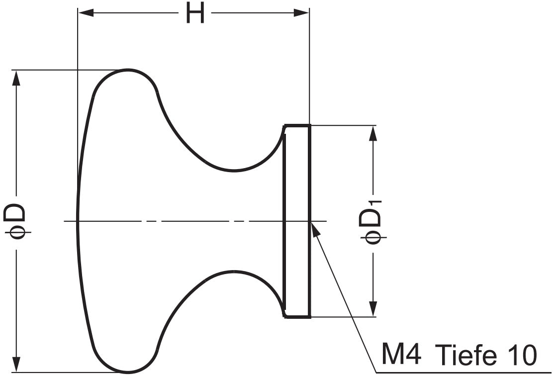 - Durchmesser (ΦD) des Knopfgriffs: Φ30 mm (1-3/16″)